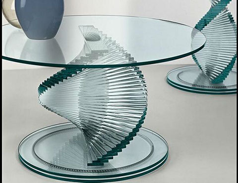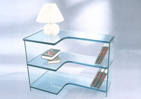 Las infinitas posibilidades que nos ofrece la gran variedad de vidrios y técnicas para manipularlo que existen actualmente en el mercado posibilitan poder realizar todo tipo de muebles de uso doméstico o comercial, tales como tapas para mesas de comedor, mesas de centro y esquineras, mesas para tv, jardineras forradas o realizadas íntegramente en vidrio, estanterías, rinconeras, aparadores, vitrinas, expositores, revisteros, etc. todo ello en virtud de la capacidad tecnológica que combinada con todas las técnicas y tipos de vidrio que poseemos posibilita satisfacer las más altas exigencias de calidad y diseño.